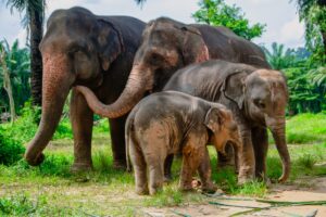 At Krabi Elephant House Sanctuary, we provide a safe and loving home for a magnificent family of 9 rescued elephants who previously endured exploitation and abuse in labor-intensive roles.